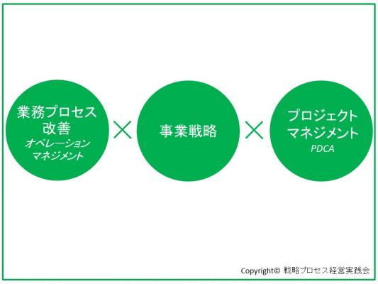 「業務プロセス改善(オペレーションマネジメント)」「事業戦略」「プロジェクトマネジメント(PDCA)」の3分野を融合させたメセッドで、わかりやすく支援していきます。