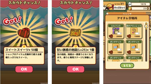 イベント期間中は、ゲーム内でアイテム「スイートスイーツ」を集めることで、ショップ内の「アイテム交換」機能から様々なアイテムと「スイートスイーツ」を交換することが可能です。本イベント期間のみ入手可能な限定職業「エルフコス」をはじめ、本作のガチャである「たまごポン」を利用できる「ポンチケット」などお得なアイテムと交換できるこの機会をぜひお見逃しなく!