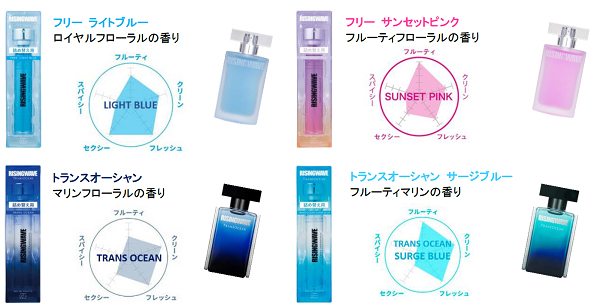ライジングウェーブで人気の香り4種。ON、OFF問わずに使いやすい、さわやかな香りです。