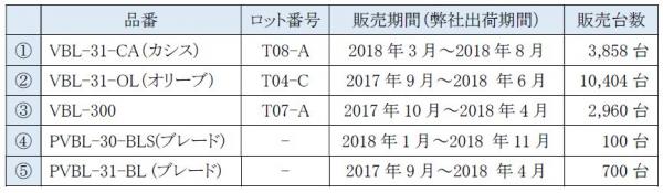 製品および部品ともに該当ロットをご使用のお客様はブレードを無償交換させていただきますので、対象製品名・品番・ロット番号をご確認のうえ、専用窓口までご連絡いただけますよう謹んでお願い申し上げます。