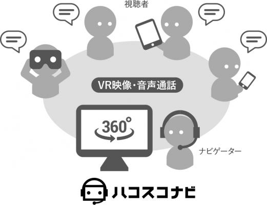 「ハコスコナビ」は、同時最大接続5名で、1名がナビゲーターとなり、ナビゲーターは参加者の視線の動きをリアルタイムにナビゲート画面で確認しながらボイスチャットができます。また、ナビゲーターはVR映像/静止画を切り替えて様々な空間を案内することができます。