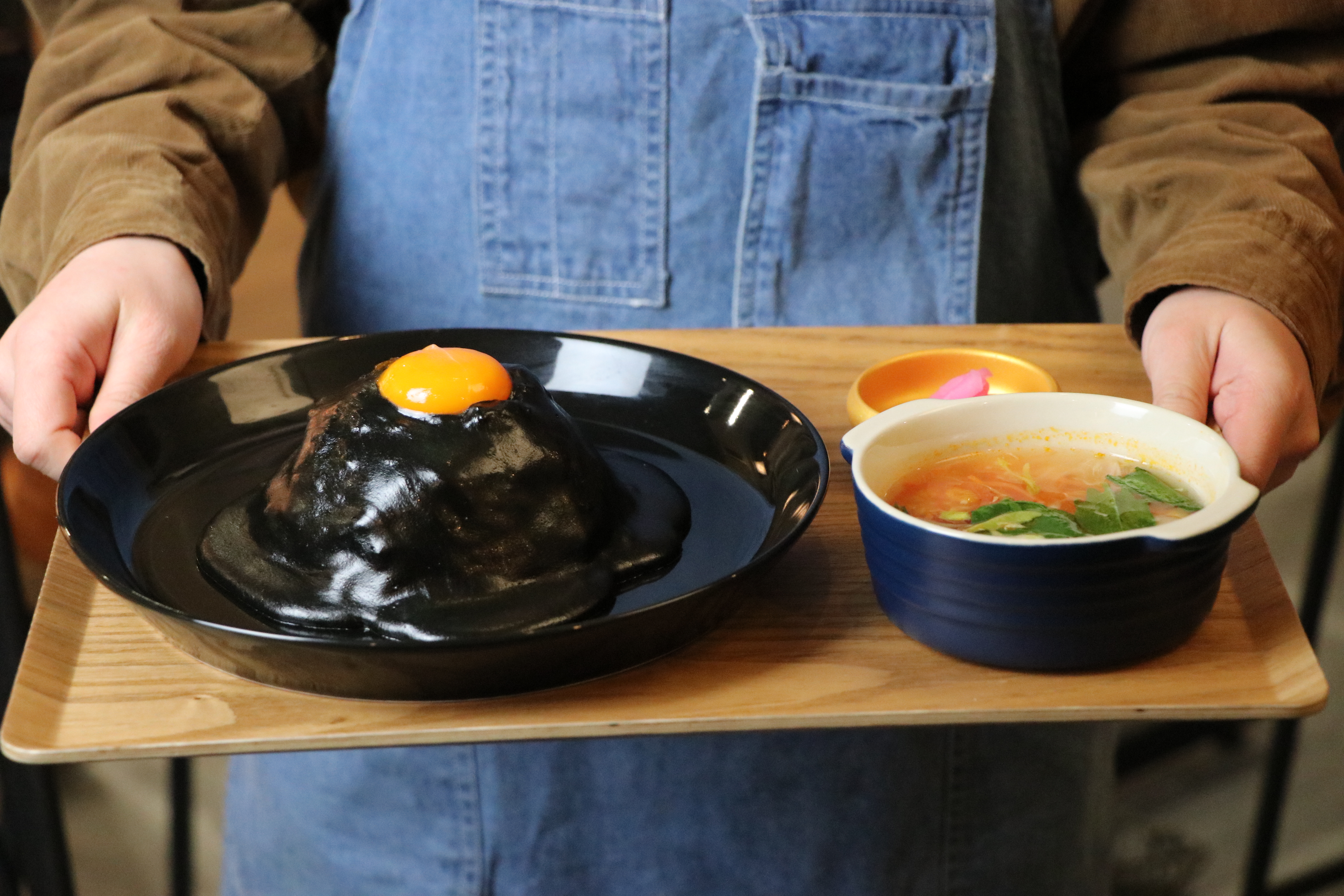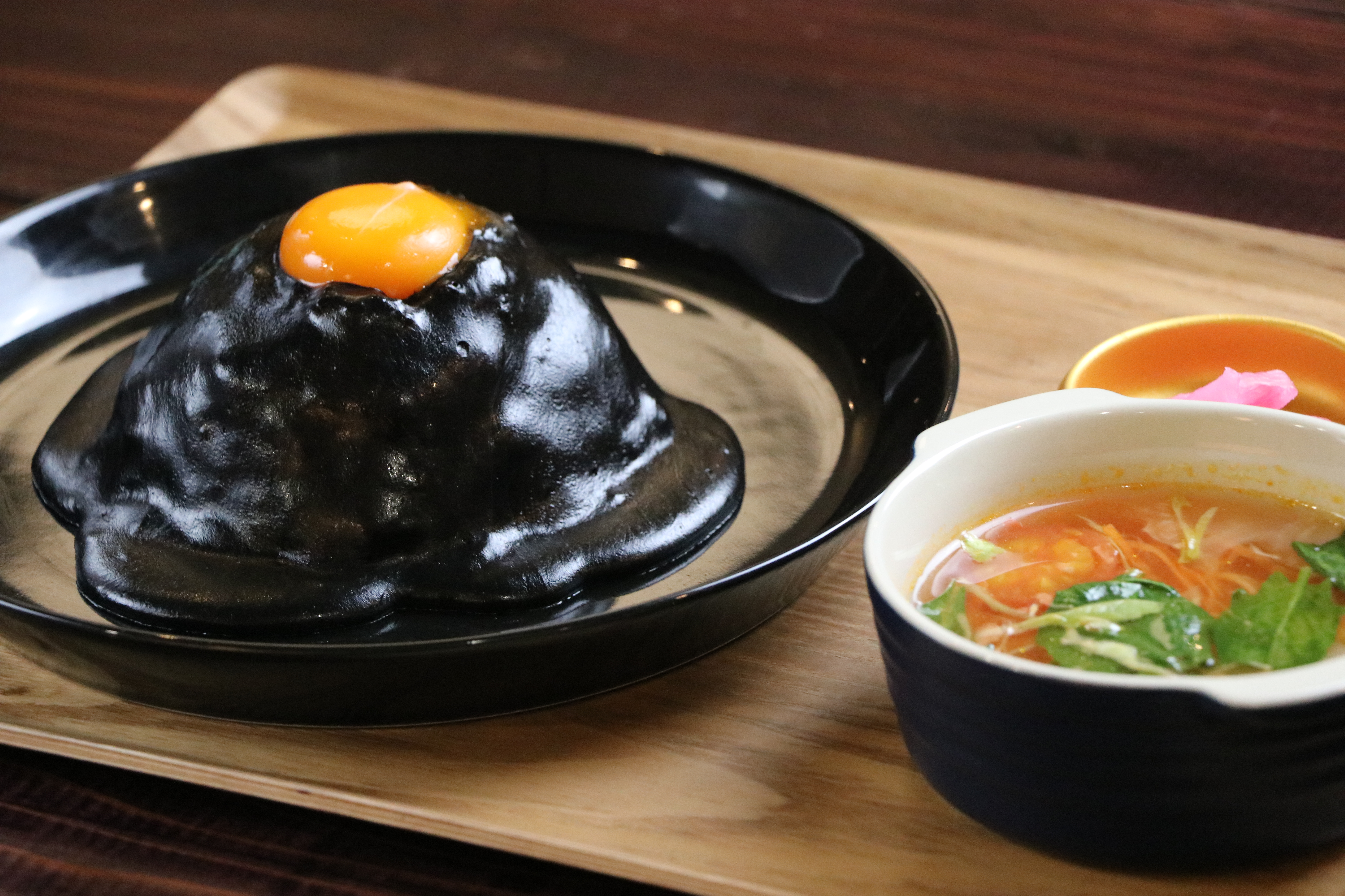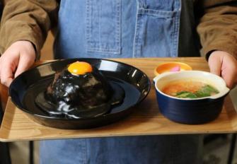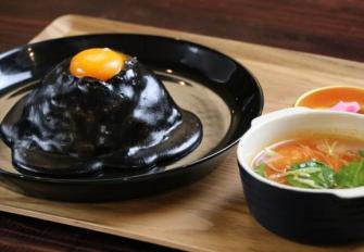 備考:イカ墨を使用した黒いチーズキーマカレー