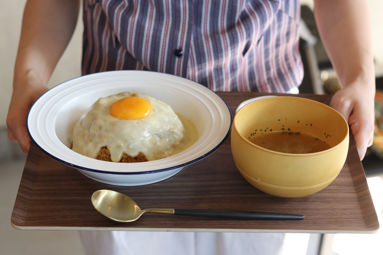 内容:スパイシーチーズキーマカレーネロ(伊:黒)(税込1,100円)スープ・漬物付