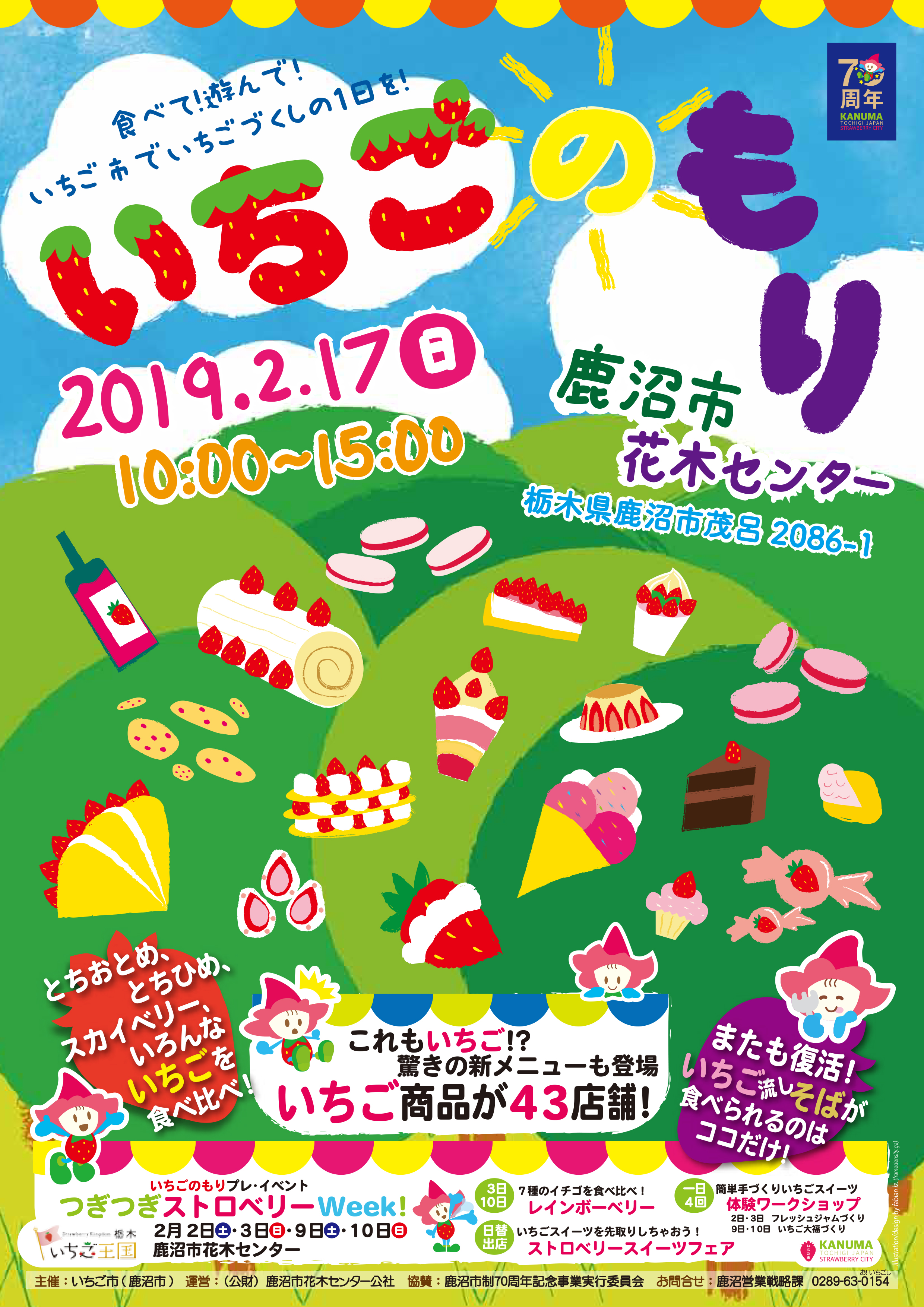 このイベントは、2016年11月に【いちご市】を宣言した鹿沼市が、【いちご市】宣言の街であることををアピールし、認知の向上とイメージの定着化を図るため開催しています。初開催は、昨年2018年2月で、来場者数は約7,000人(公式発表)の実績があります。今回は2回目の開催で、当社も2回目の出店です。