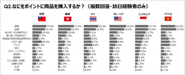 「使い道(多目的など)」を4番目に上げたのが、香港とインドネシア。見た目が可愛いとか、人気の商品だからとか旅行中の“ノリ”で買うのではなく、使い勝手のいい商品を、口コミ情報などを踏まえながら慎重に選んでいる傾向が読み取れます。