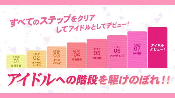 アイドルの原石はステップ7までクリアをすると、「アイドルどっとカンパニー」に所属でき、本格的なアイドルとして道をスタートすることが可能です。