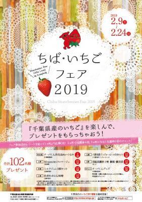 千葉県では、2月9日(土曜日)~24日(日曜日)の間、県内のいちご農園と飲食店・菓子店が連携した「ちば・いちごフェア2019」を開催。期間中フェア参加の農園・店舗をご利用いただいた方の中から抽選で「チーバくんぬいぐるみ」などが当たるプレゼント企画を実施します。