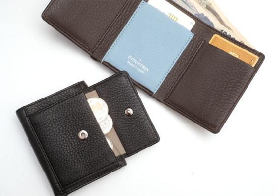 ポケットにもすっぽり入る小型なサイズながら、お札は折らずに入れられ、小銭入れも完備。