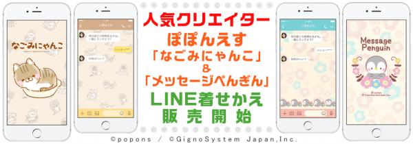 ジグノシステムジャパン株式会社(本社:東京都千代田区、代表取締役社長:沼尻一彦)は、LINE株式会社(本社:東京都新宿区、代表取締役社長:出澤剛)が運営するコミュニケーションアプリ「LINE」内にて、2019年2月26日にLINE着せかえ「なごみにゃんこ」「メッセージぺんぎん」を販売いたします。