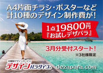 グラフィックデザイン事業を手掛けるクリエイティヴジャパン株式会社(神戸市中央区、代表取締役ディレクター 鈴木龍介)は本日2月26日から、ご好評をいただいている定額制デザインサービス『デザインパラダイス』*お試しデザパラ*の3月分受付を開始しました。