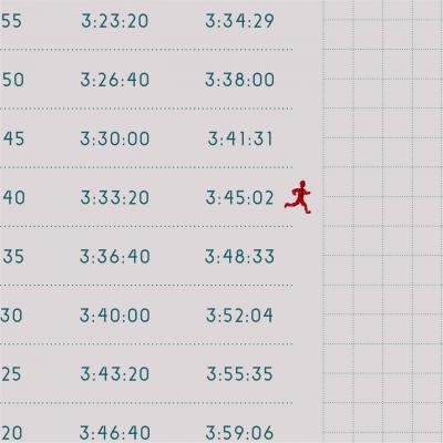 イーブンペースでのハーフタイムとフルマラソンのゴールタイムを知ることができます。