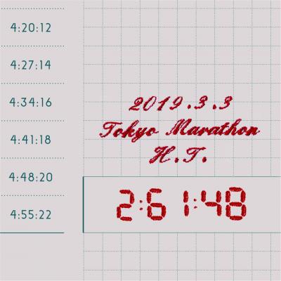 東京マラソン参加の記念にゴールタイムを刺繍して自分自身の思い出にするのはいかがでしょうか。