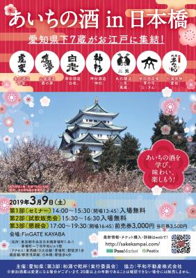 江戸時代には尾張藩が酒造りを奨励したことで、愛知県の酒造業は急速に発展し、18世紀末には江戸に入る酒の三割を担う程でした。今回、江戸への酒の玄関口である、日本橋兜町・茅場町の日本橋エリアで、愛知県の酒蔵7蔵のお酒を利き酒し放題で味わいながら、蔵人と来場者との交流をする懇親会を開催します。また、お酒に合う地元のおつまみもご用意しておりますので、日本酒とおつまみのペアリングもお楽しみいただけます。また、渋谷の日本酒専門店「純米酒 三品」の燗酒名人が付けるお燗や、愛知県ゆかりの料理を提供します。(キャッシュオン)