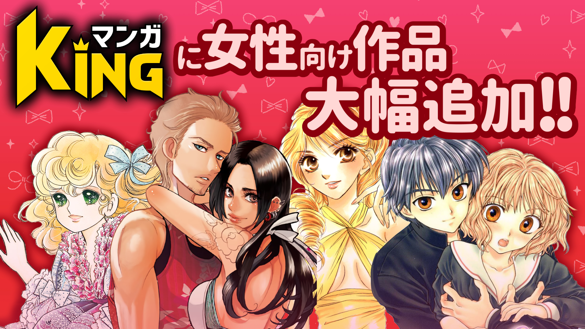 なお、BL(ボーイズ・ラブ)やTL(ティーンズラブ)漫画に関してはマンガKINGの姉妹アプリ、マンガMINTにて公開中です。