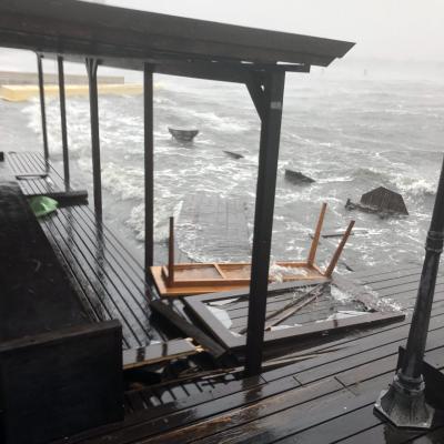 大阪北港マリーナにおいても、護岸を3メートルを超える高潮が襲い、桟橋、ボートヤード、マリーナ建物、付属施設に甚大なる被害をもたらしました。