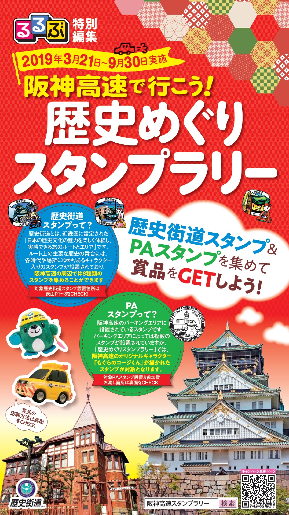JTBグループで旅行・ライフスタイル情報を提供する株式会社JTBパブリッシング(東京都新宿区、代表取締役社長:今井敏行)は、阪神高速道路株式会社、歴史街道推進協議会と共同で「るるぶ特別編集『阪神高速で行こう!歴史めぐりスタンプラリー』」を企画し、2019年3月15日(金)に阪神高速道路株式会社より発行しました。