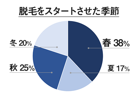 まず、脱毛を始めたシーズンについて調査したところ、38%の人が春に脱毛を始めたと回答しました。