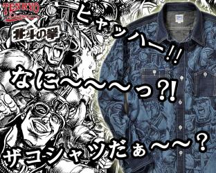 漢たちの壮絶な運命を描いた不朽の名作『北斗の拳』の名脇役であるザコキャラクターを全面にデザインされたインパクト溢れるシャツをデニムの本場、岡山の技術で弊社のブランド『倉敷天領デニム』とのコラボレーションを実現しました。