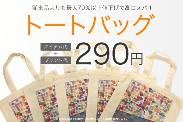 新システム導入により従来品よりお安くご提供できる定番トートバッグですが、販売開始を記念して、3/29~4/30 12:59までさらに限定大特価でご提供致します。枚数を作れば作るほどお得になるので、この機会にぜひご利用ください。