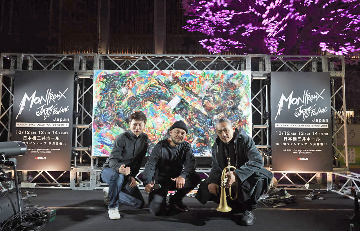 2019年10月12日(土)、13日(日)、14日(月・祝)に、東京・日本橋三井ホールでおこなわれる『モントルー・ジャズ・フェスティバル・ジャパン 2019』(主催:ヴィジュアルノーツ)。そのシンボルとなる“キービジュアル”の即興制作(ライブ・ペインティング)が、去る3月29日(金)に東京・日本橋 福徳の森にて開催。上記の通り完成した。