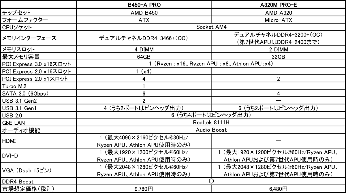 一方、「A320M PRO-E」は、企業内の従来資産を活かすDVI-DとVGA出力を備えたスタンダードモデルで、Athlon APUとの組み合わせで廉価にシステムの更新を行なうことができます。