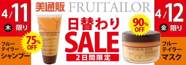 プロ向け美容材料の通信販売サイト「美通販」が、4月11日(木)・12日(金)の2日間限定で、人気のヘアケア「フルーテイラー」の日替わりセールを開催いたします。