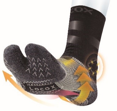 「LOCOX(R) バイタルウォークフットサポーター」は、足首や足裏アーチなどをサポートし、安定性を高めたテーピング構造に加え、足裏には滑り止め付きなので、靴の中で足をしっかりと踏ん張らせることができる足袋型高機能サポーターです。ウォーキングや登山などアクティブに活動するシニアだけでなく、足が疲れやすい方、足首をひねりやすい方、アーチの崩れや浮き指が気になる方などに適しています。