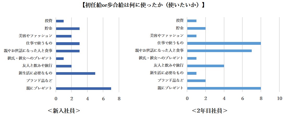 ■初任給の使い道、ダントツ1位は「親にプレゼント」、2年目社員は「仕事で使うもの」と自分に投資