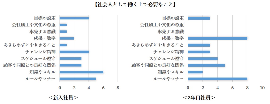 ■社会人として働く上で必要なこと、新入社員は「知識やスキル」2年目社員は「ルールと成果」