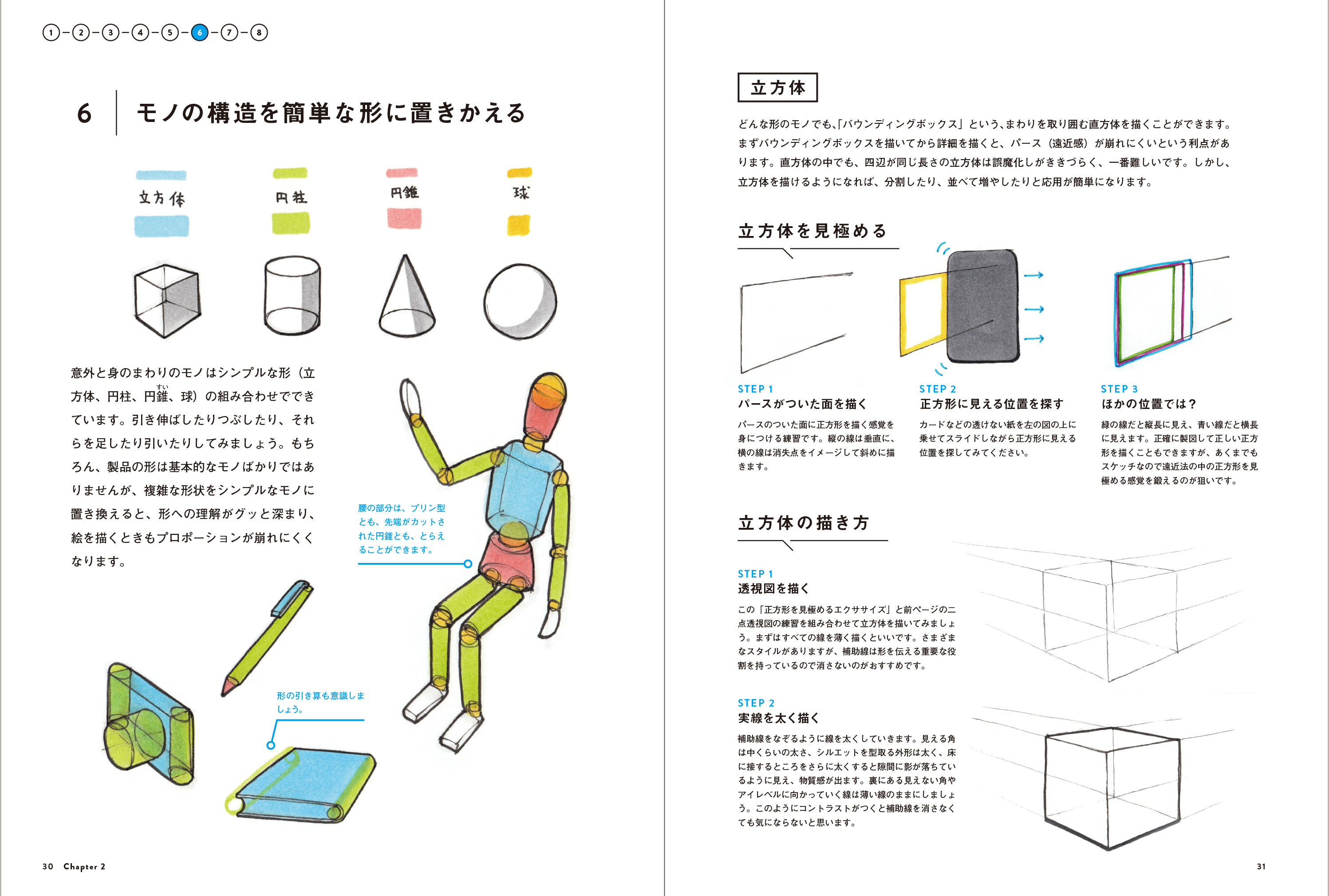 基本姿勢と道具/直線の描き方/円と楕円の描き方/三面図/透視図法/