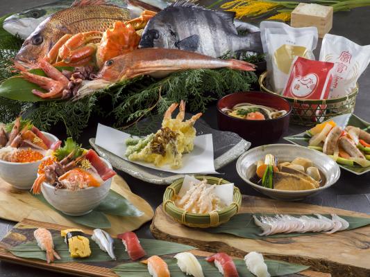 日本料理の定番、「握り鮨」や、天ぷらで味わう“北陸産野菜”に加え、富山県産のホタルイカや甘エビなどを盛り込んだ海鮮料理の醍醐味を、「豪華海鮮丼」に仕立てました!郷土料理や名物料理も登場する北陸の“幸”この機会にぜひご賞味ください。