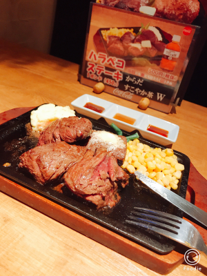 メイン商品である「ハラペコステーキ」は、アメリカ産最高ランクのプライムビーフを厳選して仕入れ、筋や脂を全て丁寧にとりのぞき、赤身肉の旨味の凝縮したステーキを熱々の鉄板で提供し、好みのグラム数(50gごと無制限)、好みの焼き加減(6段階)、6種類のタレやローズソルト、わさび醤油などで、カジュアルにお客様のお好みの食べ方で召し上がっていただく鉄板ステーキ店です。