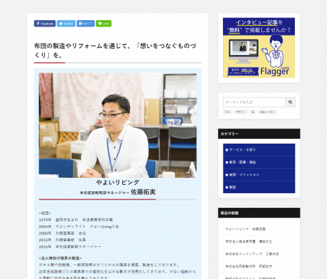 岩手県内でさまざまな分野で活躍する経営者や団体代表、プロジェクトリーダーなどの「旗振り役(Flagger)」にスポットを向け、インタビュー記事を掲載するwebメディアです。