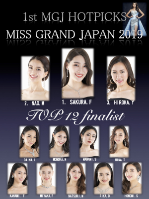 ミス・グランド・ジャパン(MGJ) 2019(企画/運営:株式会社フェイスアップジャパン、主催/一般社団法人ナショナルビューティコンテスト協会)ファイナリストが選出され1ヶ月が経ちました。2019年5月14日(火)にファイナリストたちの成長度、SNSでの発信の頑張り、レッスン参加姿勢、講師たちへの印象..等々トータルで評価し、現在のTOP12を発表いたしました。