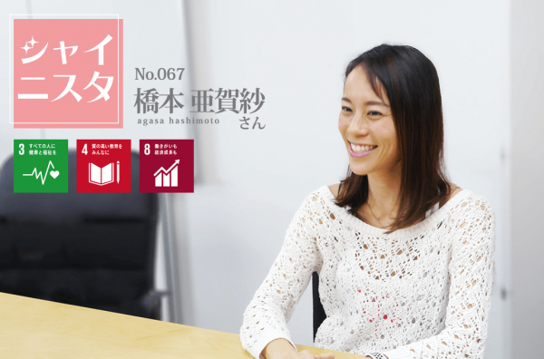 公開する橋本亜賀紗さんの活動は「SDGsナンバー3 すべての人に健康と福祉を」「SDGsナンバー4 質の高い教育をみんなに」「SDGsナンバー8 働きがいも経済成長も」に該当。