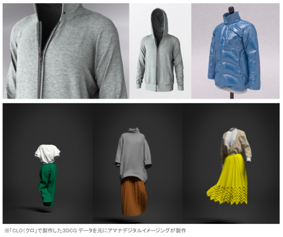 ファッション3Dモデリストが製作した3DCGのクオリティーをさらにアマナデジタルイメージングで高めることで広告やECでの活用も可能になり、アパレルや商社でのサンプル経費軽減や広告、販売までの製作時間の短縮を進めることが実現できます。