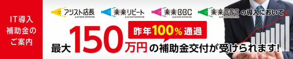 これにより、同社提供の4製品、受注一元管理ツール「アシスト店長」・定期通販特化型カートシステム「楽楽リピート」・卸取引専用ECカートシステム「楽楽B2B」・BtoBtoCカートシステム「楽楽BBC」が補助金を利用して導入可能になりました。