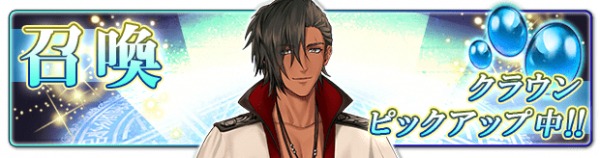 アプリ内【召喚】機能にて、攻略キャラクターの一人である『クラウン』の関わるR+(☆3)以上の召喚カードの出現率が4倍にアップしています。