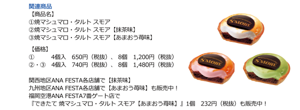 キャンプなどでマシュマロを焼き、チョコレートとグラハムクラッカーなどでサンドして食べる、アメリカで人気のスイーツ「スモア」をモチーフに、両社でプロジェクトを立ち上げ、開発に約8ヶ月間かけて完成した商品。2017年3月に発売したところ、販売開始直後からSNSや雑誌などを通じて大きな反響をいただき、現在では“新しい東京みやげ”として羽田・成田空港のANA FESTAで売上NO.1商品となりました。