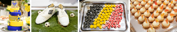 冨安健洋選手など、サッカーの日本代表選手が所属するSTVVは、チームの成績報告を兼ね、国内のスポンサーに向けたスポンサーパーティーを毎年1~2回開催しています。今回、レコールバンタンは今年の1月に行なわれたスポンサーパーティーに続く2回目の協力となり、前回担当したオリジナルケーキに加え、フードも担当しました。