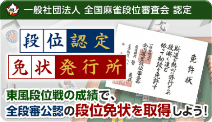 2019年6月12 日(水)より、全段審公認の段位認定・免状の取得ができるようになります。ゲーム内の成績を通じ、公に認められる麻雀の技量が証明できます。