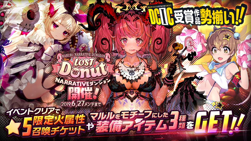 また、★5「マルル」をはじめ、DCIC受賞作品である「バンシー」や「チアガールダビ」をフィーチャーしたストーリーが楽しめるNARRATIVEダンジョン「LOST Donut」も同時開催となりました。