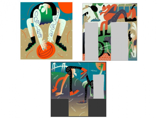 店内には、湘南出身多摩美術大学卒業の26歳平成生まれのアーティストKeeenue(キーニュ)氏が「GRAND STAGE DIVER CITY」の為にアートワークを書き下ろして頂いております。