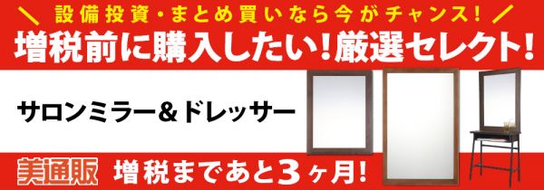 プロ向け美容材料の通信販売サイト「美通販」が、増税前に購入したい!理美容室にオススメの「サロンミラー&ドレッサー」キャンペーンを開催いたします。