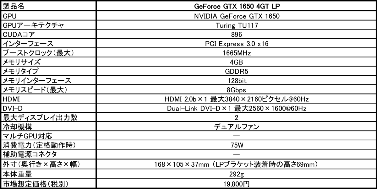https://jp.msi.com/Graphics-card/GeForce-GTX-1650-4GT-LP