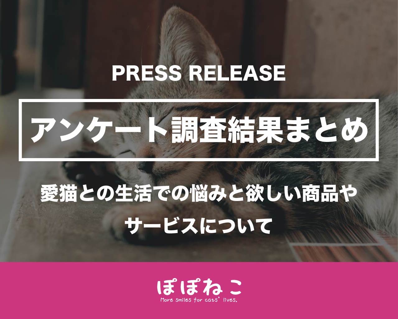ハゲにくい猫首輪や猫に優しい猫服を製造・販売する株式会社ぽぽねこ(所在地:茨城県つくばみらい市)は、昨今の猫ブームのなか、愛猫との生活の中での悩みと同時に欲しい商品やサービスについて公式オンラインショップ会員を対象にアンケート調査を実施しましたので、その結果をお知らせいたします。