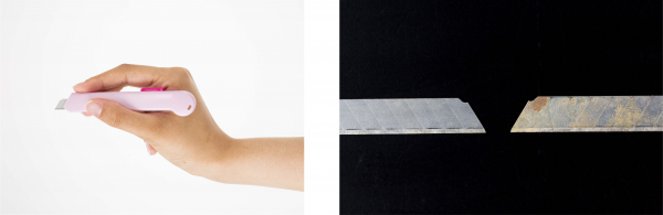 宅配段ボールの開梱や郵便物の開封など、利便性の高いカッターナイフですが、刃が見える外観や凹凸の多い形状は、女性にとって見た目にも手にもなじまず、家に眠ったまま使われていない、ということも多くありました。