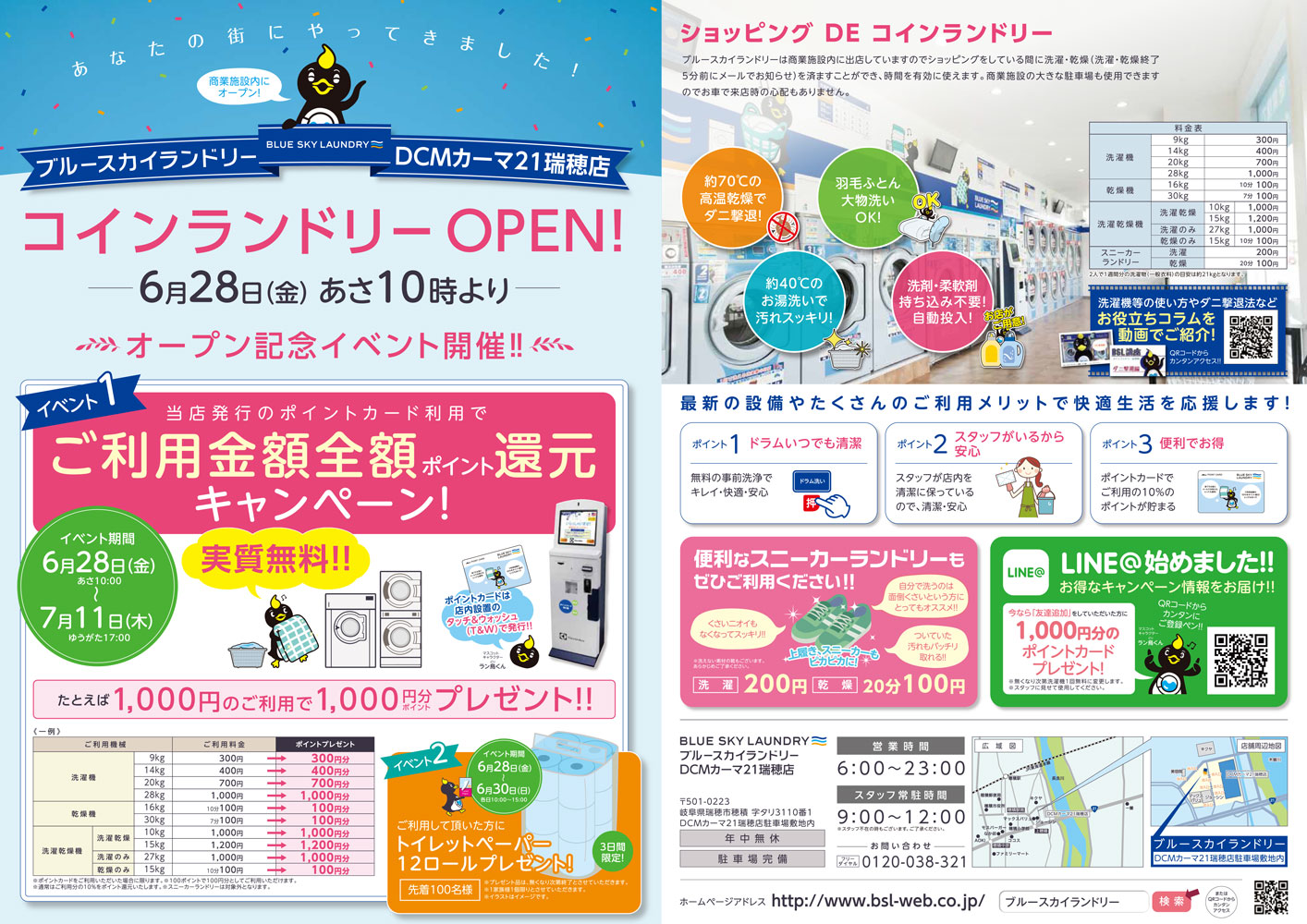 この度2019年6月28日(金)より岐阜県瑞穂市にブルースカイランドリーDCMカーマ21瑞穂店、愛知県東海市にブルースカイランドリーヤマナカ東海店、静岡県菊川市にブルースカイランドリーえんてつ菊川SC店 を出店致します。