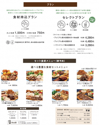 「食材持込プラン」のほか、飲み放題と選べる食材の「セレクトプラン」