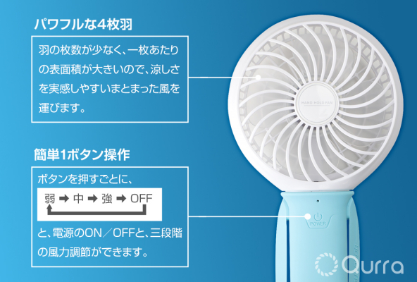 製品名 : Qurra(クルラ)吊り下げ式 ハンディファン Anemo Take